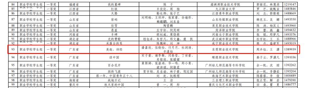 获奖名单截图