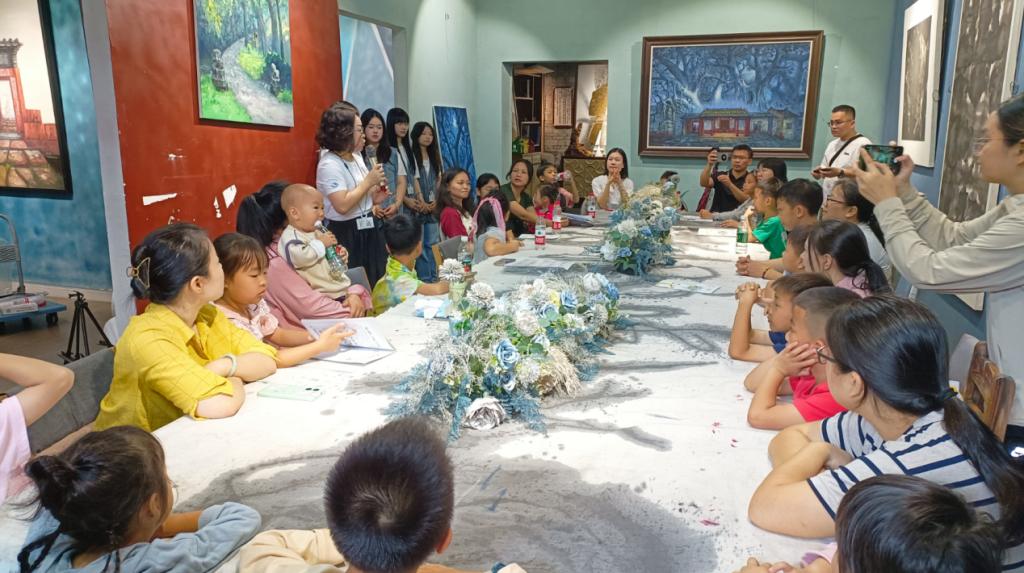 随后,在我校老师的指导下,亲子家庭将蓝晒技艺和花卉纹样设计相结合,设计自己喜欢的蓝晒图案,并制作出自己专属的蓝晒作品。