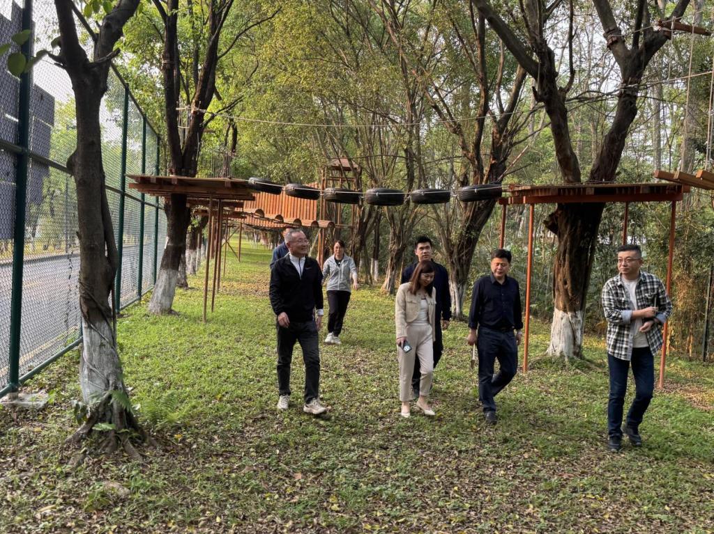 会后,刘泉副书记一行实地考察了我校体育学院的教学设施,包括丛林穿越户外体验基地、田径场及营地教育实训室等。刘泉表示,学校优质的硬件资源与松山湖的区位优势高度契合,未来将加速推动合作项目落地,实现资源共享、互利共赢。