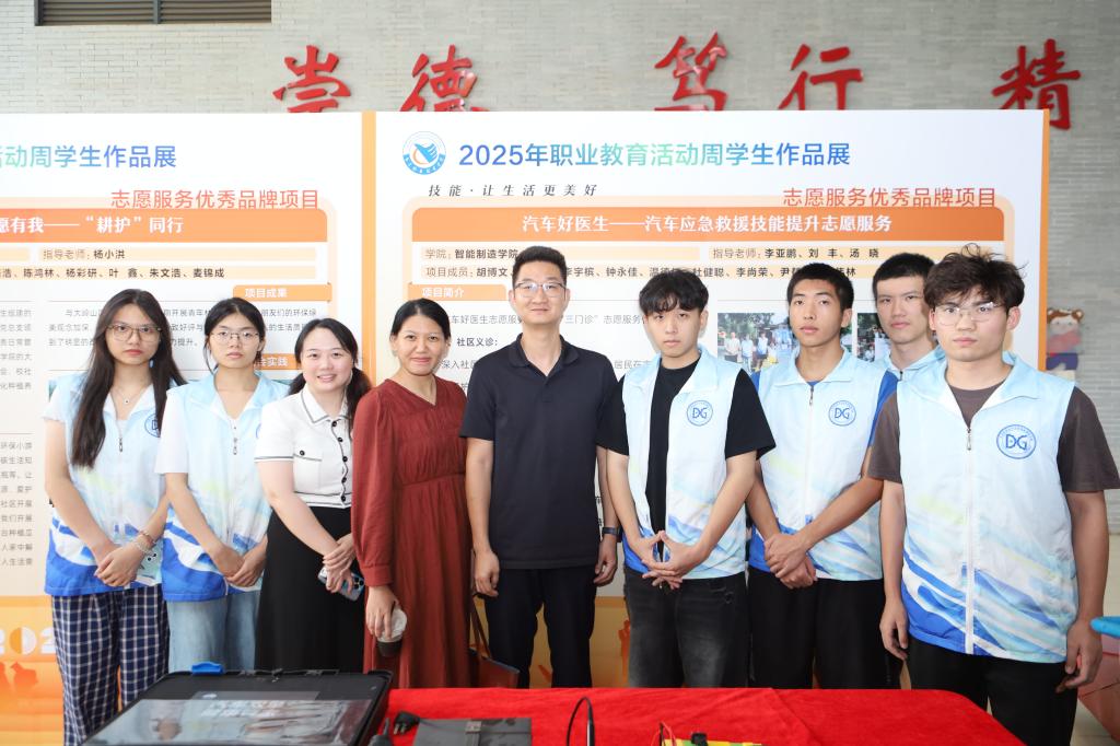 学习活动后,与会领导与师生共同参观了我校2025年职业教育周学生作品展,“汽车好医生”志愿服务队展示的社区义务服务项目成果和自主设计研发的便携式汽车检测工具等作品,引起了吴韵婷副部长的高度关注和赞赏。她勉励同学们继续深化专业学习,练就过硬本领,将专业技能更好地服务于国家战略和社会需求,尤其是在服务“百千万工程”中展现青年的智慧与担当。